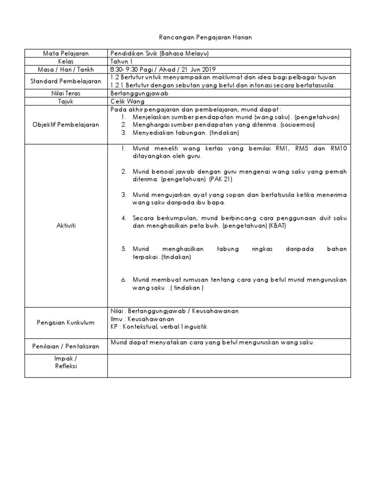 RPH BM Tahun 3 from imgv2-2-f.scribdassets.com Sistem pendaftaran atas talian (spat) telah diperkenalkan untuk memudahkan permohonan murid ke tahun 1 tanpa ibu bapa pelajar perlu mengisi borang manual. Bm tahun 1 menyusun perkataan untuk membina ayat tanya. Muat turun / download rancangan pengajaran harian (rph) pendidikan agama islam (pai) tahun 1 untuk kegunaan tahun 2019. Rph bm kssr tahun 1 2011 mp3 & mp4. Text of rph bm tahun 3 kssr. Salam, bm tahun 1 dan 3 ada tak cikgu. 30 orang umur murid : Rph bahasa melayu tahun 1 (2).