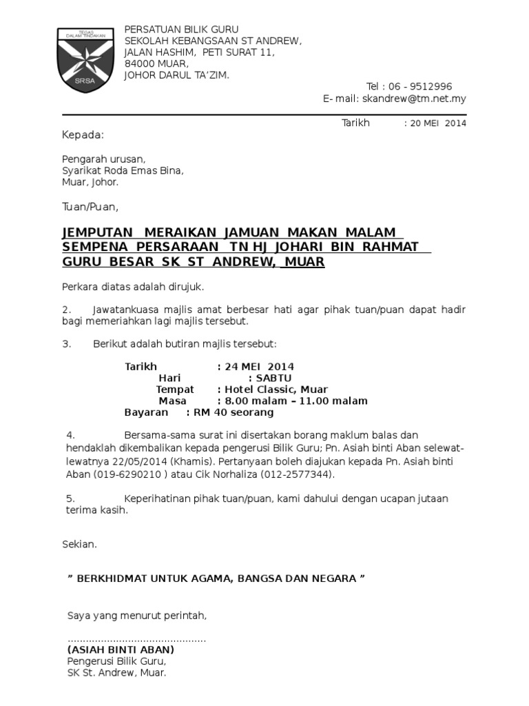 Contoh surat jemputan majlis perpisahan have an image from the contoh surat rasmi jemputan ke majlis sukan cara ku mu via carakumu contoh surat jemputan anti dadah via slideshare contoh surat tugas.